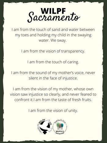 Inset: An example from WILPF Sacramento’s collective “I Am” poem.