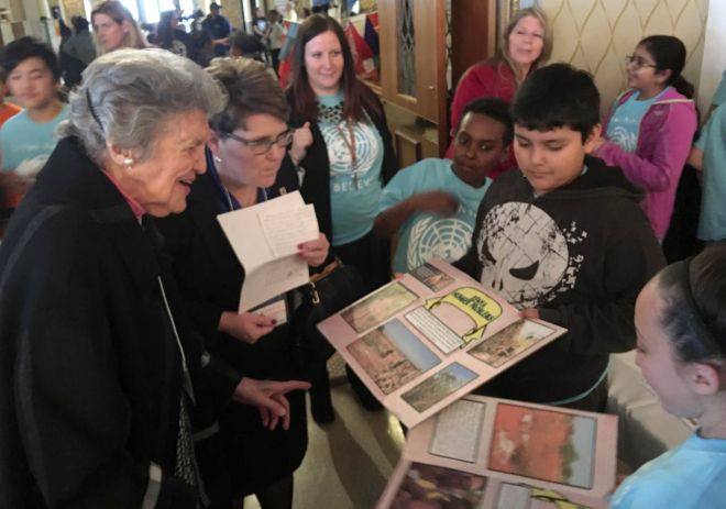 Joan exemplifies the enduring transformative power of education through the A.D. Robertson Fund for the United Nations along with the Rotary Club of Milwaukee and her work with the Milwaukee Public Schools (see photo). Joan’s daughter, Annette Robertson, an educator herself, writes of her mother’s dedication, “Education is really the first big and primary answer.” She then adds Joan’s solution to most of the world’s problems, “The more education people get, the more they are going to realize their civic responsibility, women especially.”