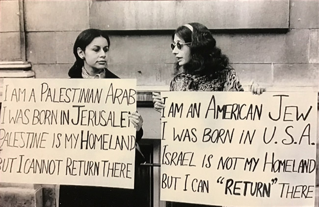 Ellen Siegel and Ghada Karmi outside the Israeli Embassy in London in 1972; Credit: Ellen Siegel
