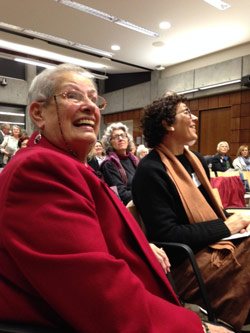 Millee Livingston, left, and Leah Halper spoke of their years with WILPF. Credit: Becky Fischbach