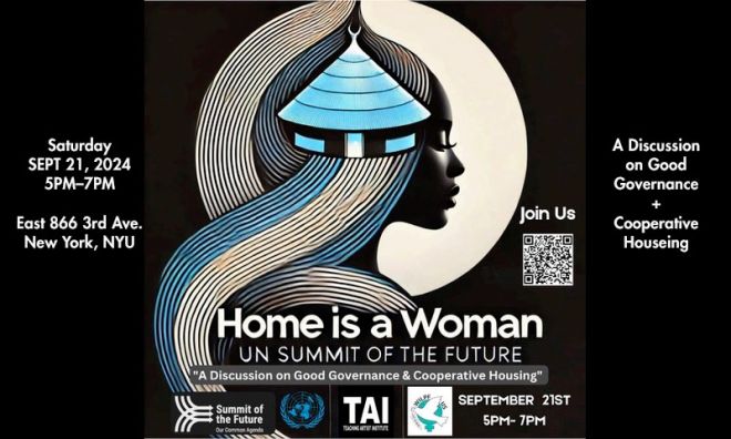 The UN Summit of the Future was a forward-looking gathering called by UN Secretary-General António Guterres to help bring the UN into the “next chapter of multilateralism that is more inclusive and networked.” WILPF members who work directly with the UN had the opportunity to provide feedback as the Pact for the Future was being developed. Kim Poole, DMV Branch member, heard about the Summit in the spring and began planning! The process was a chance to learn more about how WILPF and the UN connect, as well as how our US Section interacts with our “UN Office,” generally called the International Secretariat. The result was a parallel event called “Home is a Woman,” which included a discussion of good governance and cooperative housing along with art and presentations by collaborators Teaching Artist Institute and Reparations Now. In addition, WILPF members attended the Summit of the Future and became more acclimated with the process of attending formal meetings. Kim expressed gratitude for the entire team that brought the panel together, as she was in Africa with her work there. Led by Tara Vassefi, there was collaboration and connection! Onward!