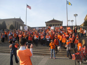 Bottom Photo: Moms Demand Action rally in honor of victims of Sandy Hook Elementary School shooting in Newton, CT, drew Philadelphia Branch members to the Philadelphia Museum of Art on December 13, 2015. Credit: Tina Shelton
