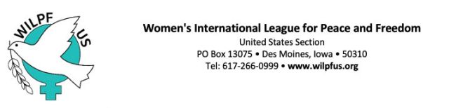 We also affirm the central role of women in peacemaking under UN Security Council Resolution 1325 (UNSC Resolution 1325, October 31, 2000) and progeny. We see WILPF’s role of advising our government in the USA on war and peace issues as consistent with this UNSC resolution.