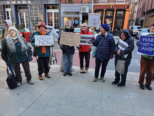 In December, our Branch became an endorser of a new coalition, named “Fridays at Fetterman’s.” Led by experienced peace activists, this coalition is building a network of activists who will gather on the sidewalk outside of Senator Fetterman’s Philadelphia office to let him know that his constituents are serious about calling for a ceasefire. They welcomed our Branch’s endorsement, and asked chair, Tina Shelton, to share a few words on Jan 5th.
