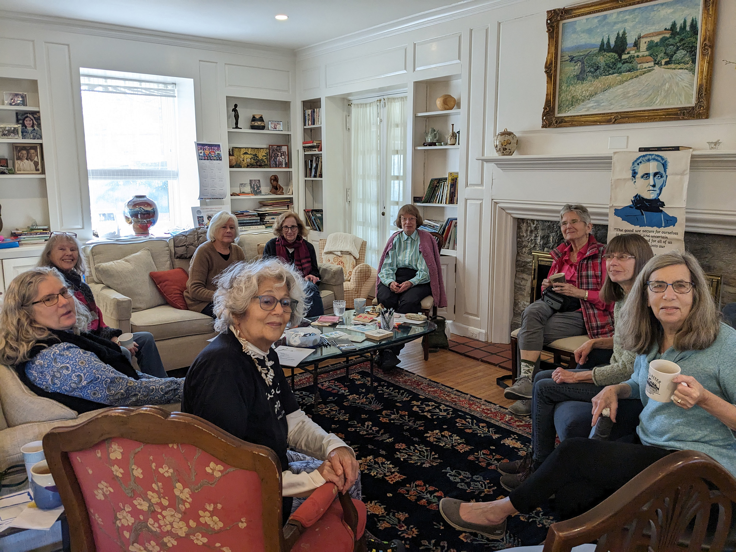 On November 18th 2023, Greater Philadelphia Branch members held a retreat in a member’s home. Due to recent events, our focus was learning from the The Middle East Peace and Justice Action Committee (MEPJAC) about recent events in Israel and Palestine. As we gathered together in person instead of our usual zoom, we greatly appreciated many things. First and foremost, we appreciated learning from Genie Silver who diligently keeps up with the news and passes on updates to not only from MEJPAC, but also our Branch. She was offered appreciation for being one of those who is “not looking away” during this time of horror and pain. Other members shared their experiences traveling to the area in past years and witnessing the stark contrast between settler homes (with swimming pools and green lawn) and Palestinian homes (with cisterns with bullet holes), as well as their grief and anger about the current situation, including the initial attack. All agreed we were grateful for the role of WILPF to educate us and provide a framework for our work for peace in the Middle East.