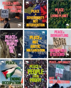Across each issue, we draw a clear line between what peace is not—deportation pipelines, weapons transfers, extraction, sanctions, surveillance, and war profiteering—and what peace is: human rights, disarmament, sovereignty, care, and collective well-being. We invite everyone to use the Peace is / Peace is Not campaign social media posts and graphics in their local communities. To fight for democracy, in solidarity.
