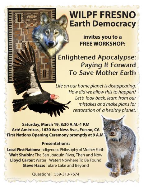 The next day, WILPF hosts the Enlightened Apocalypse: Paying It Forward to Save Mother Earth free workshop.