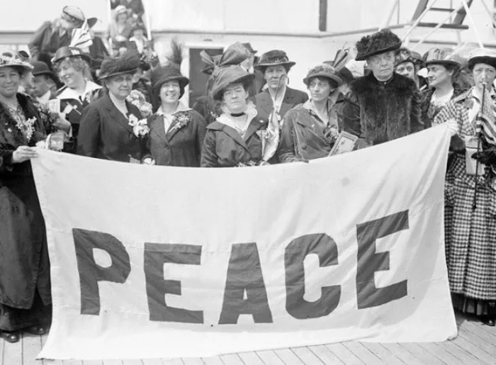 President Woodrow Wilson appointed Emily to the Ford Peace Mission in 1916, whom she advised to create the League of Nations. When this failed, she became an even stronger opponent of World War I. Alongside Jane Addams, Emily led the International Congress of Women (ICW) to the Hague to advocate for continuous mediation. She strongly opposed the 1919 Versailles Treaty, which the Chair of the Nobel Committee later noted as political wisdom on the matter. Emily lamented countries that could not attend the ICW—or were blocked from attending—such as Germany, Egypt, Palestine, and Cuba.