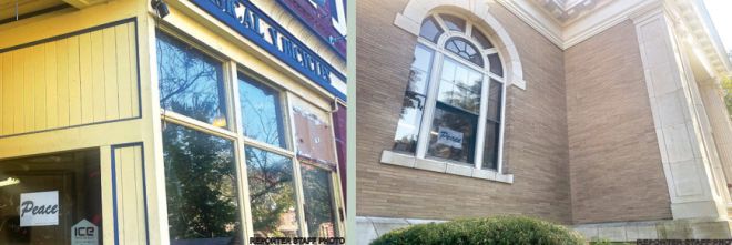 Evelyn Wulfkuhle, owner of Harvey’s restaurant, chose to display a sign because “Violence is never the solution. While it can be an effective tool for gaining control and war, it fundamentally disrupts the grounding necessary for sustaining a peaceful future.”