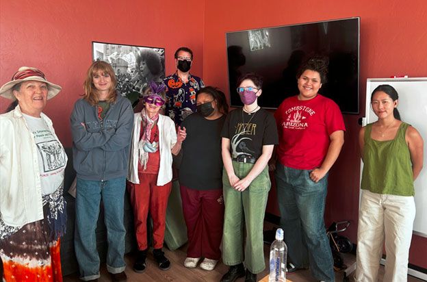 Gloria McMillian alongside the Tuscan Branch organized the University of Arizona campus WILPF gathering. We watched a video about Jane Addams and her role as Chicago’s Haunted Sapphic Icon. Just days before Halloween in the Women and Gender Resources Center, it was fitting that we watched a video showcasing Jane’s defiance towards gender norms, her intersectional identities and the rich, potentially haunted, history of Hull House. After the video, attendees were invited to reflect on the new insights they learned about Jane’s life and the importance of sharing untold stories. Several participants shared that the video offered fresh perspectives on Jane Addams’ life beyond her work in women’s suffrage, especially regarding her queer and asexual identities. We closed out with a group picture of the students who attended along with Deb Livingston who helped support the event.