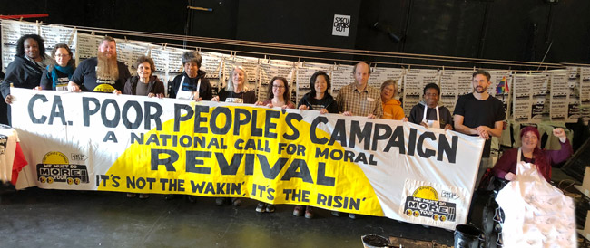 Clergy and community activists spoke movingly of the loss of jobs, homes, and businesses in the black community in the San Francisco area, where poverty, depression, addiction, lost hope, and violence can grind people down. Rev. Theoharis and an array of other speakers spoke powerfully about the moral imperative of the PPC to change these conditions, challenging all of us to build on the four pillars of the PPC: to end poverty, racism, militarism, and the devastation of the planet.